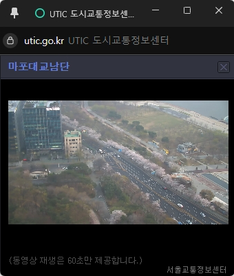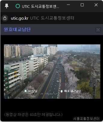 이에 따라 현재 벚꽃이 가장 잘 보이는 CCTV들로 '바로보기'를 수정하였습니다.